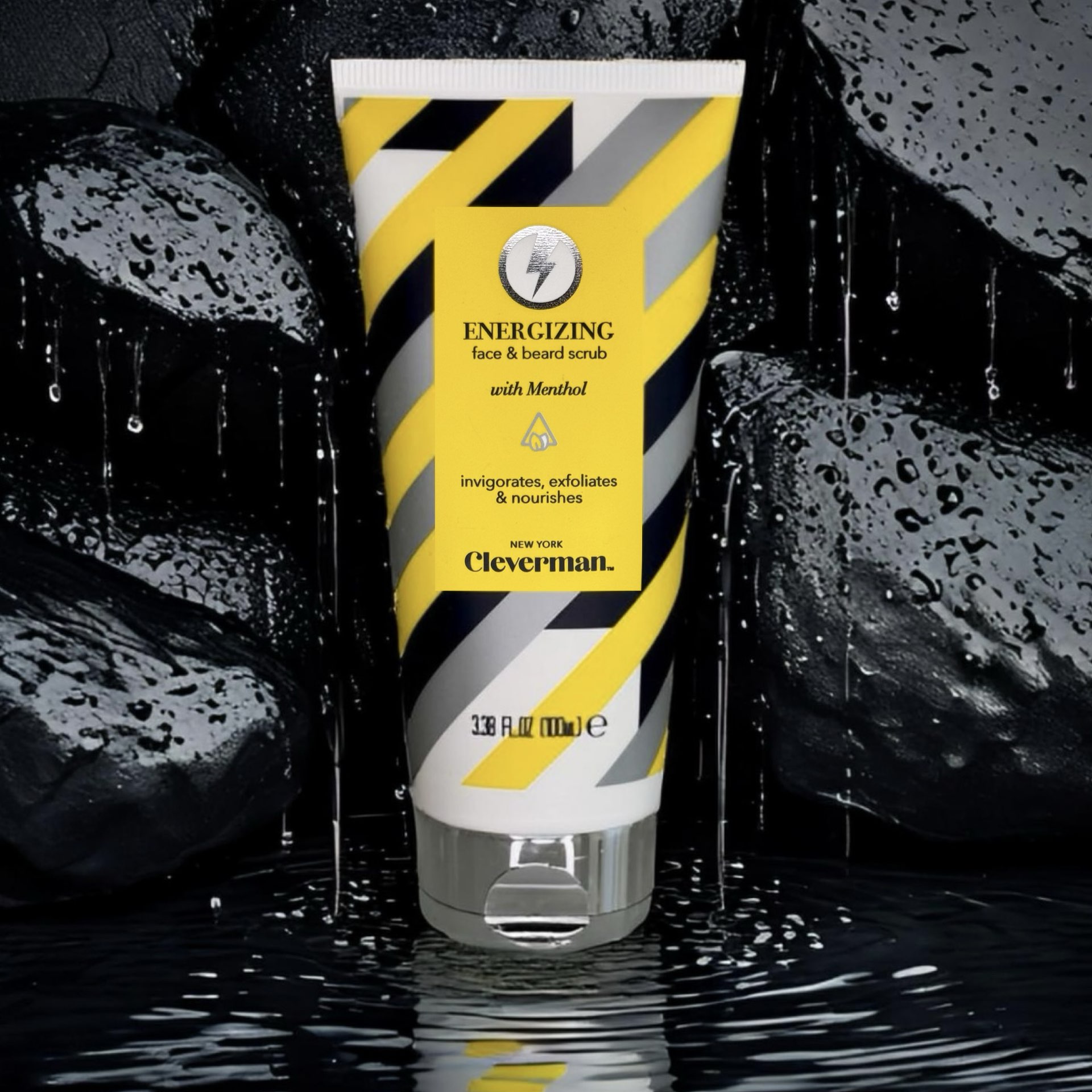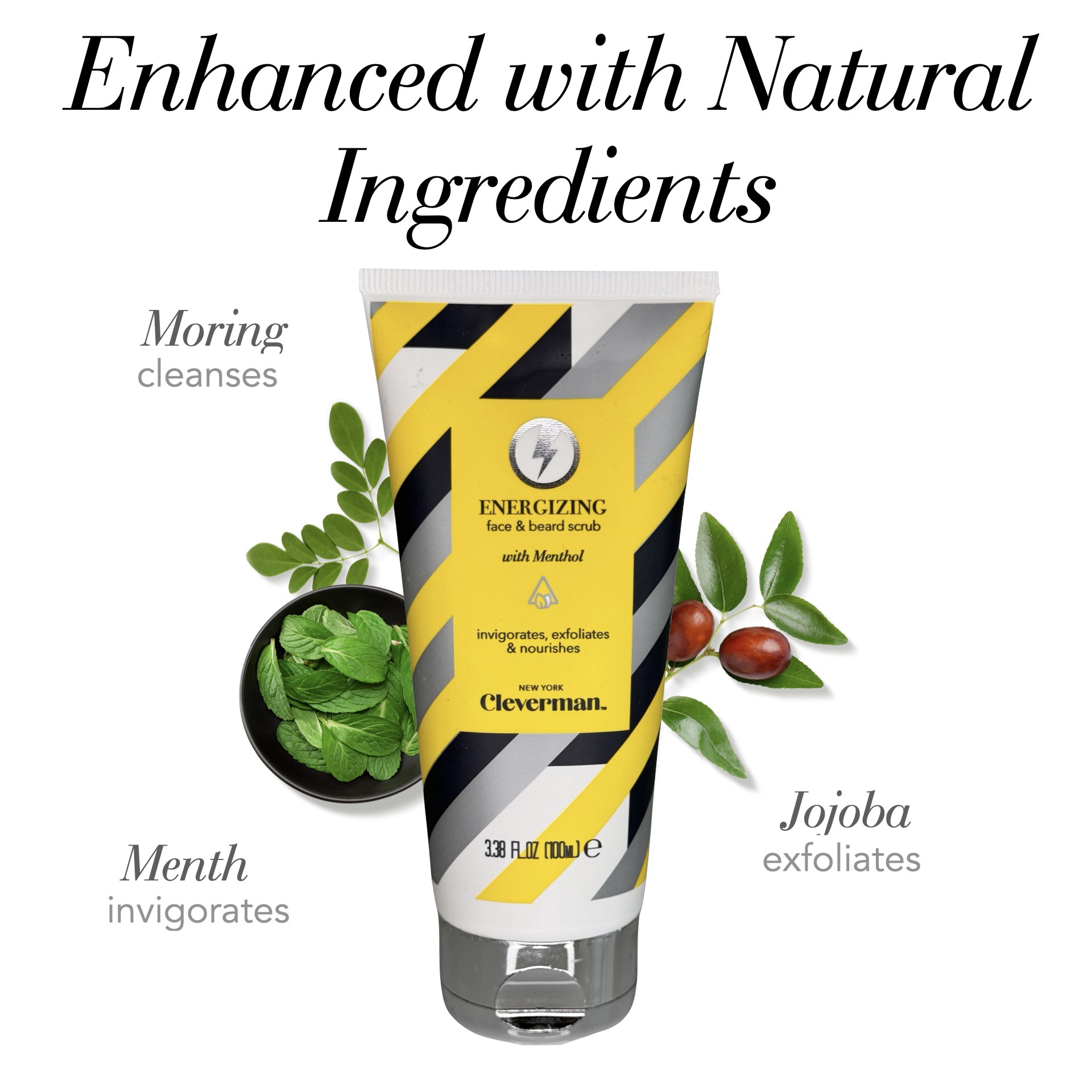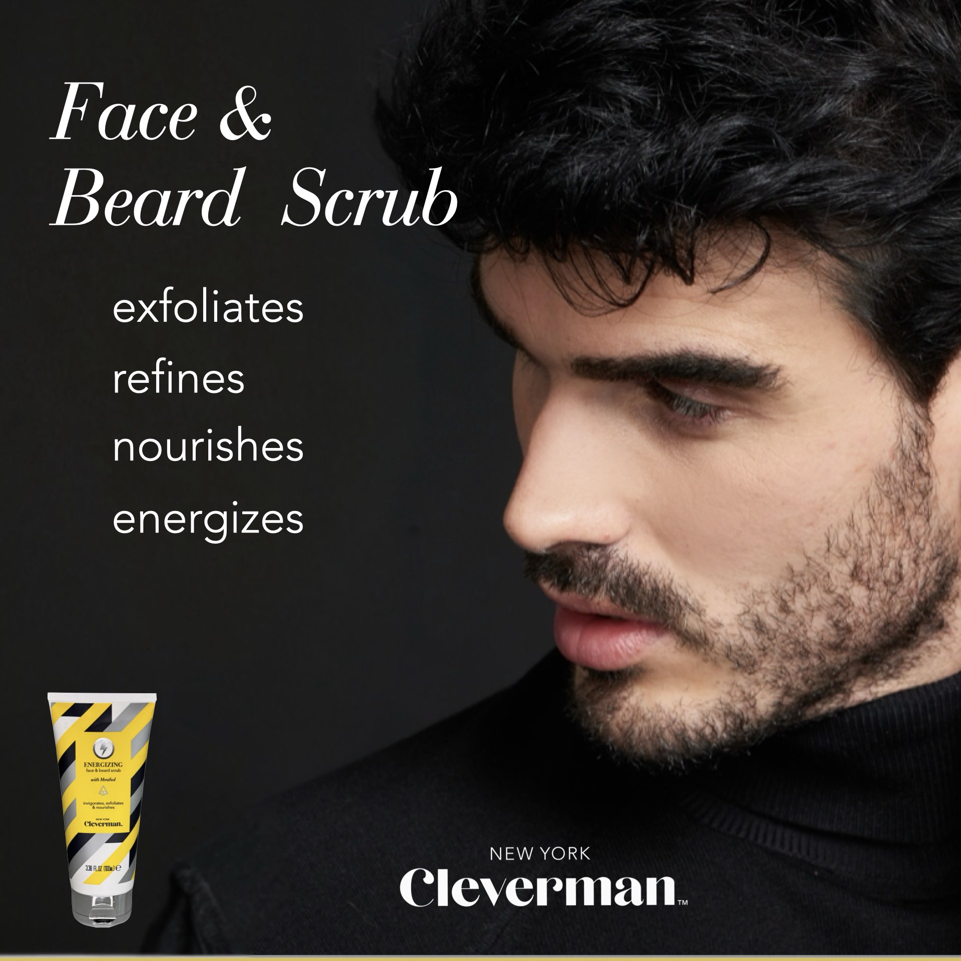 Cleverman Energizing face & beard scrub enriched with menthol for an energizing burst. It is designed for all skin types and leaves your face feeling fresh and invigorated.